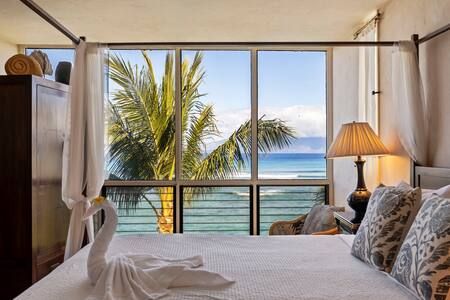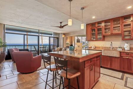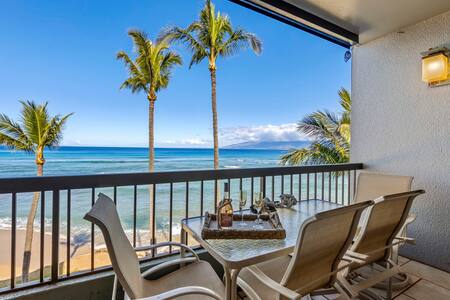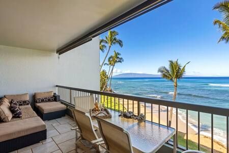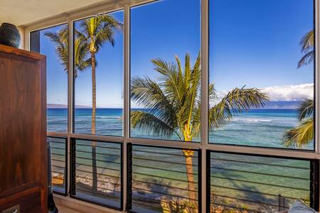 Welcome to Hale Mahina A301. This beautifully remodeled corner beachfront 2 bedroom, 2 bath condo boasts expansive ocean views throughout. This condo features a remodeled kitchen and bathrooms, office desk with a view, and breathtaking views. Hale Mahina is a very special smaller resort as it's one of the only resorts in the Honokowaii with useable sandy beach. The condo is located in close proximity to shops, dining, farmers market & more. Book Hale Mahina A301 & make incredible Maui memories!