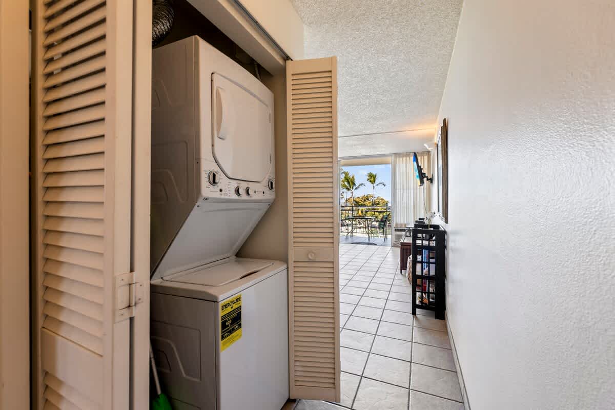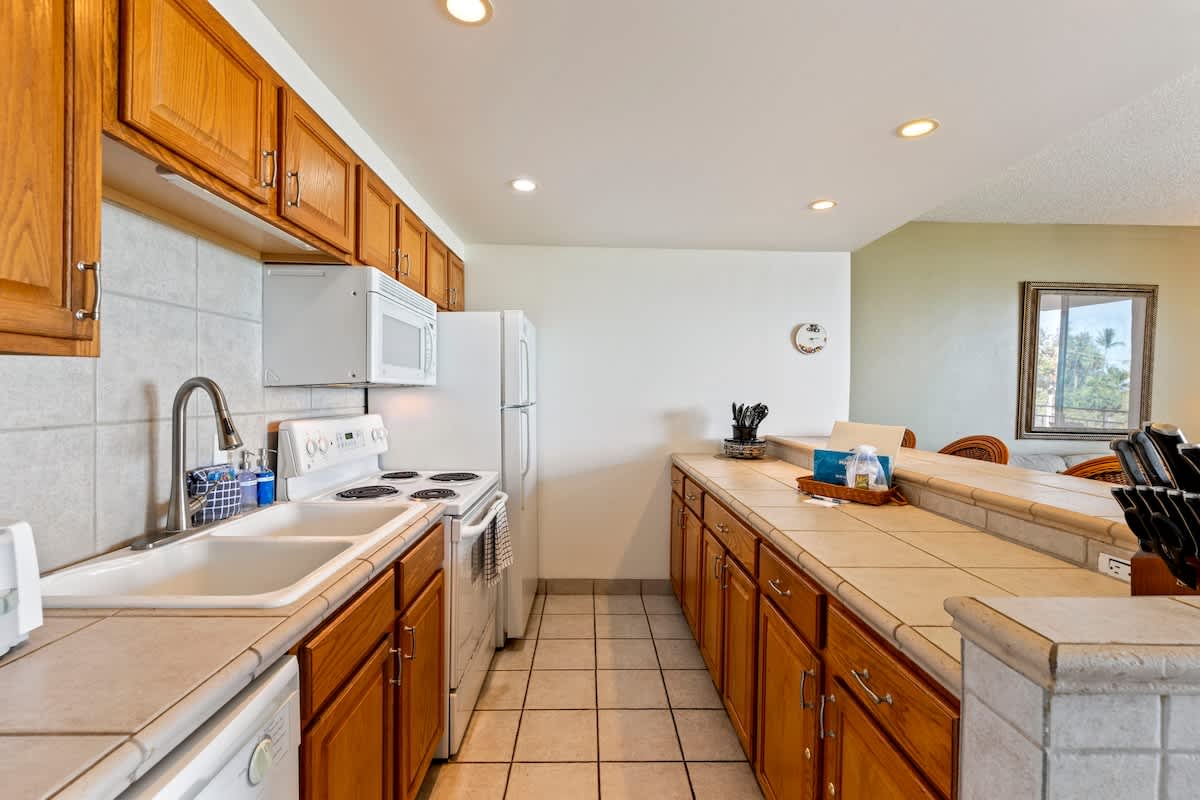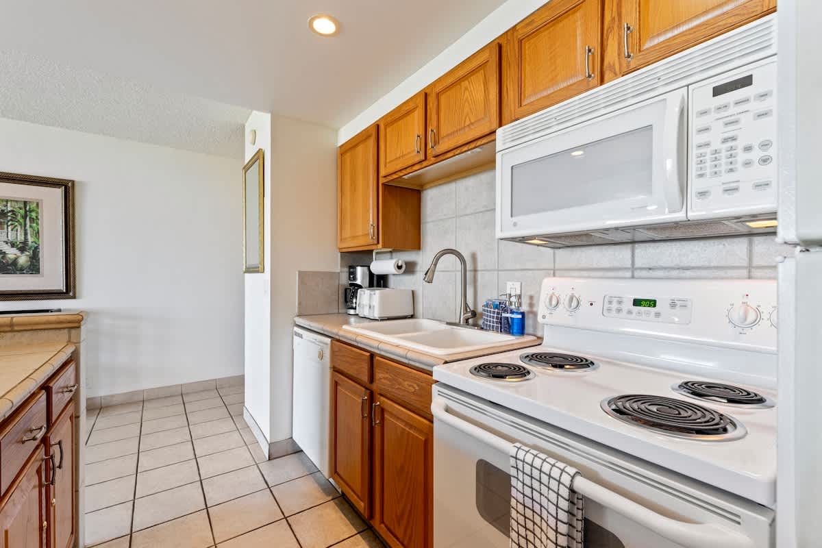 Fully equipped kitchen, in-unit washer/dryer, and private lanai