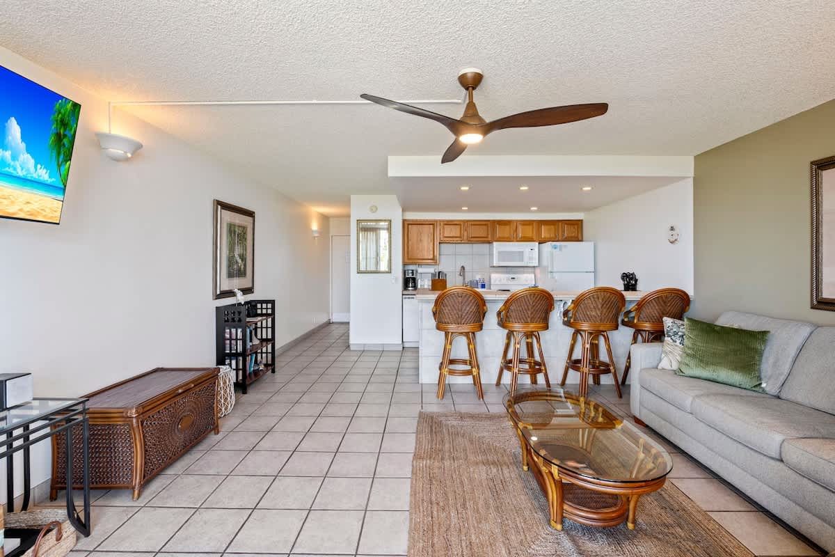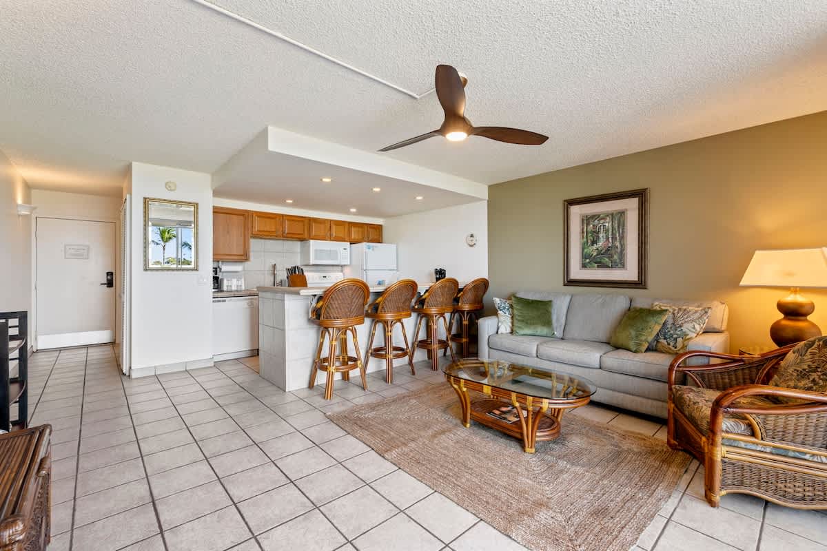 🚗🔊 Noise Notice: The unit overlooks Kihei Road and the ocean — a prime central location within walking distance of everything. You may hear some road noise when the lanai door is open. If this will be an issue, please do not book.