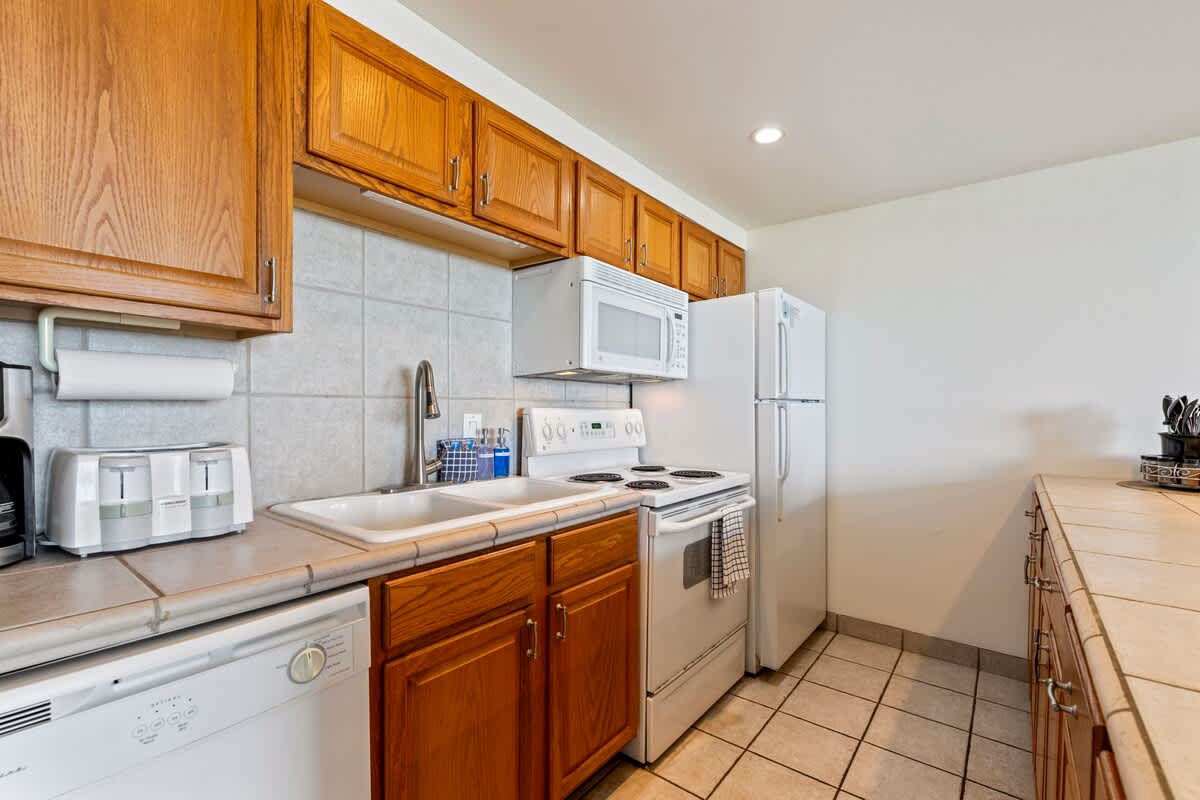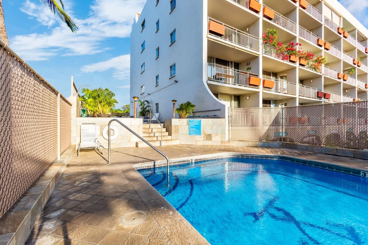 Welcome to Island Surf 402. This ocean view centrally located 1 bedroom Kihei condo can accommodate 4 people & has everything needed to feel at home. Cross the street to get to Cove Park & Kalama Park, a favorite for surfing and walking around. This condo is steps away from a huge food truck park, shops, dining, beach, surf, & more. The resort features free parking, pool, BBQ area, and located near all the action. No better place to make your Maui memories. Book Island Surf 402 today!