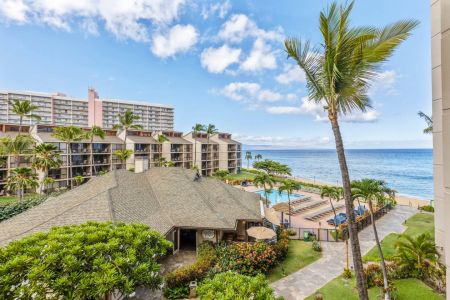 Welcome to Kaanapali Shores 405. This beautifully upgraded 4th floor ocean view 1 bed/1 bath condo features upgrades throughout while honoring classic Hawaiian style. Stay cool with central AC year round and this condo can accommodate 4 people. Admire the pacific ocean, sunsets, whales, sailboats, pool, & tropical landscape views from your private lanai. Kaanapali Shores offer a true resort experience with waterfalls, tropical landscape, restaurant/bar, day spa, fitness center & more. Honokowaii is a wonderful neighborhood on the Westside of the island with shops, farmers market, food truck park, restaurants, grocery store, and beach park.