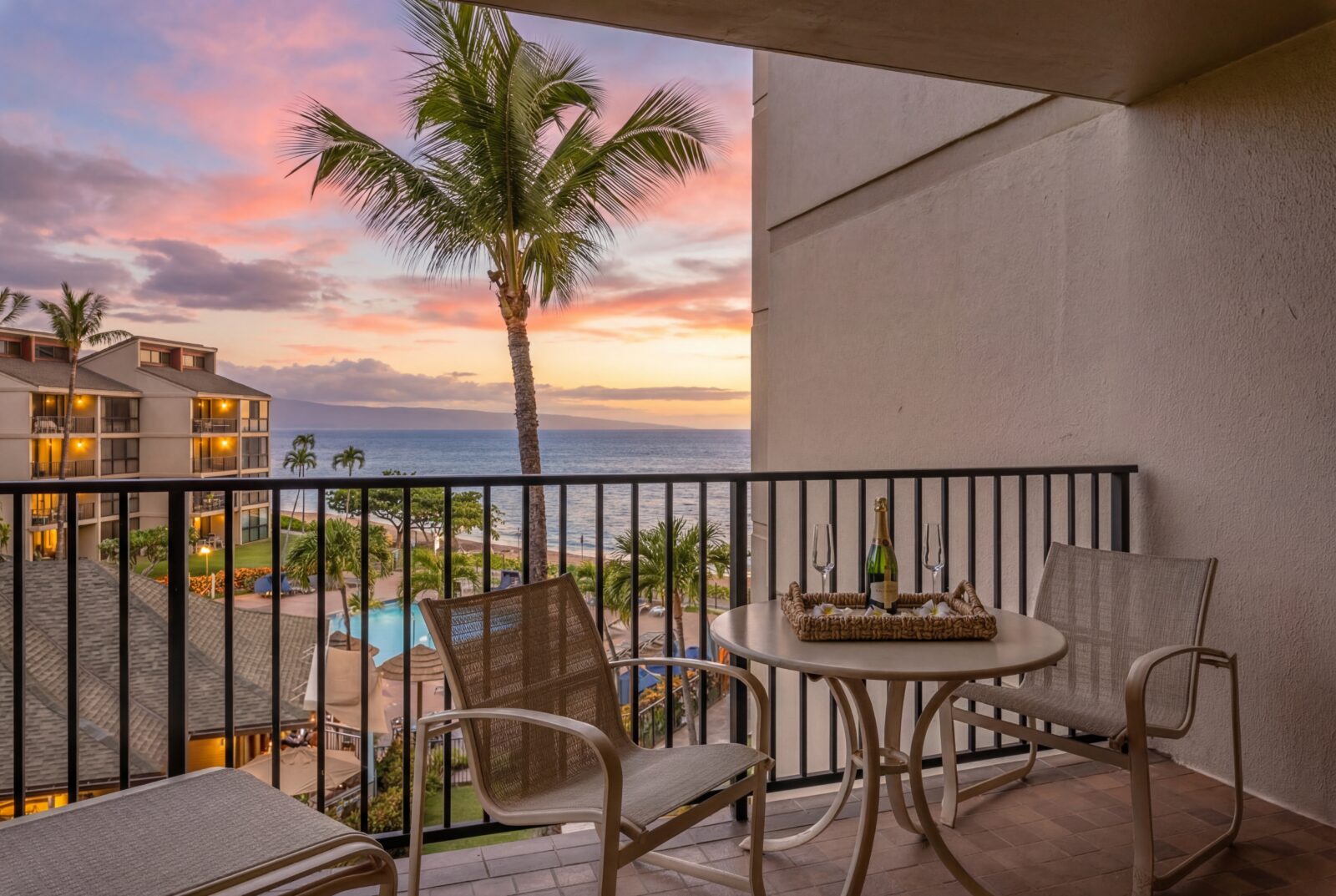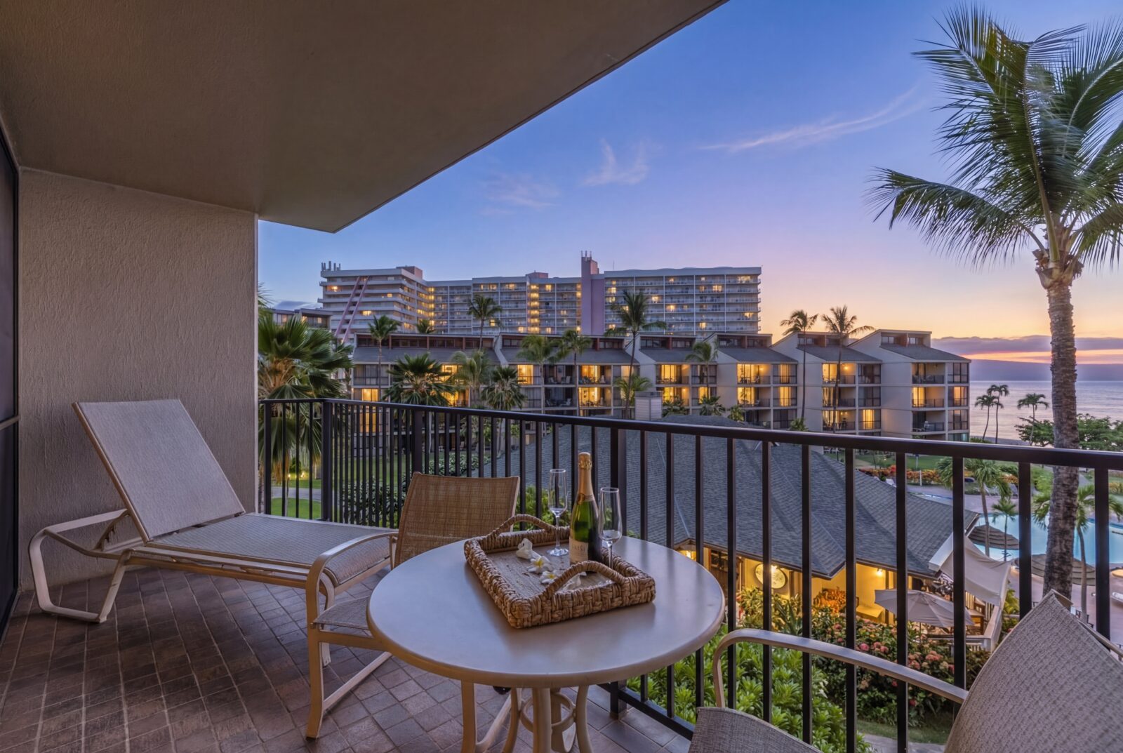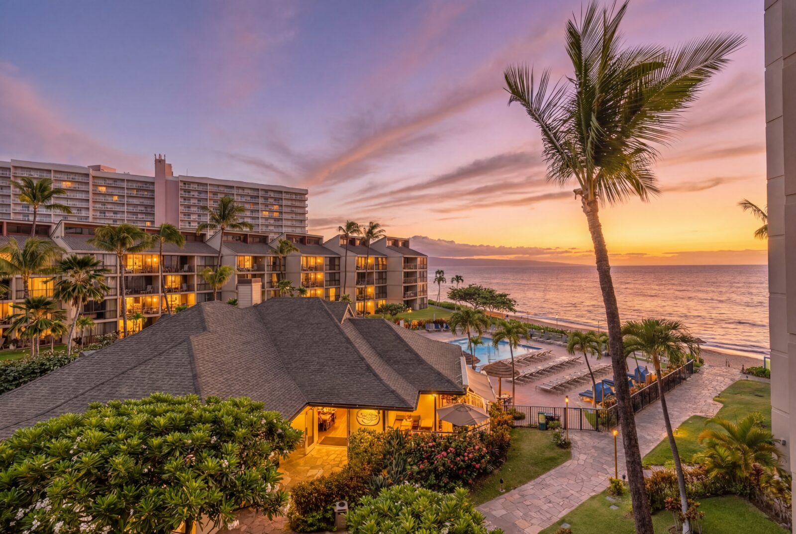 - Private lanai overlooking the Pacific, sunsets, and tropical gardens