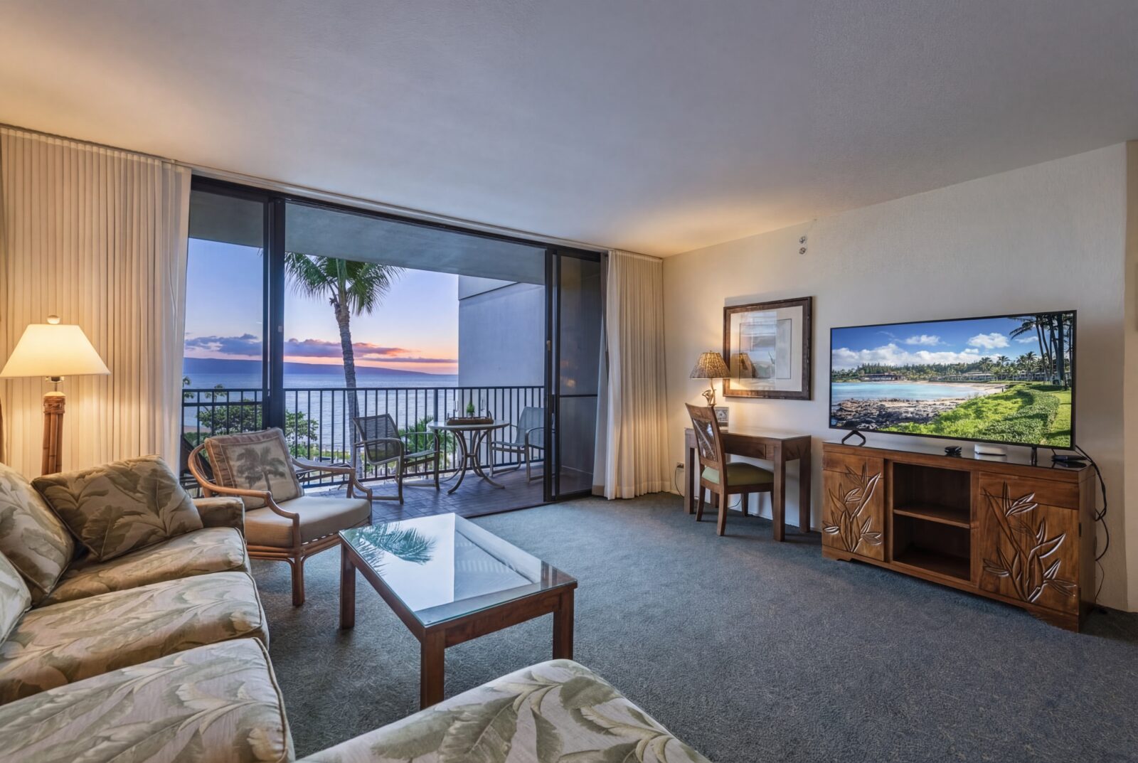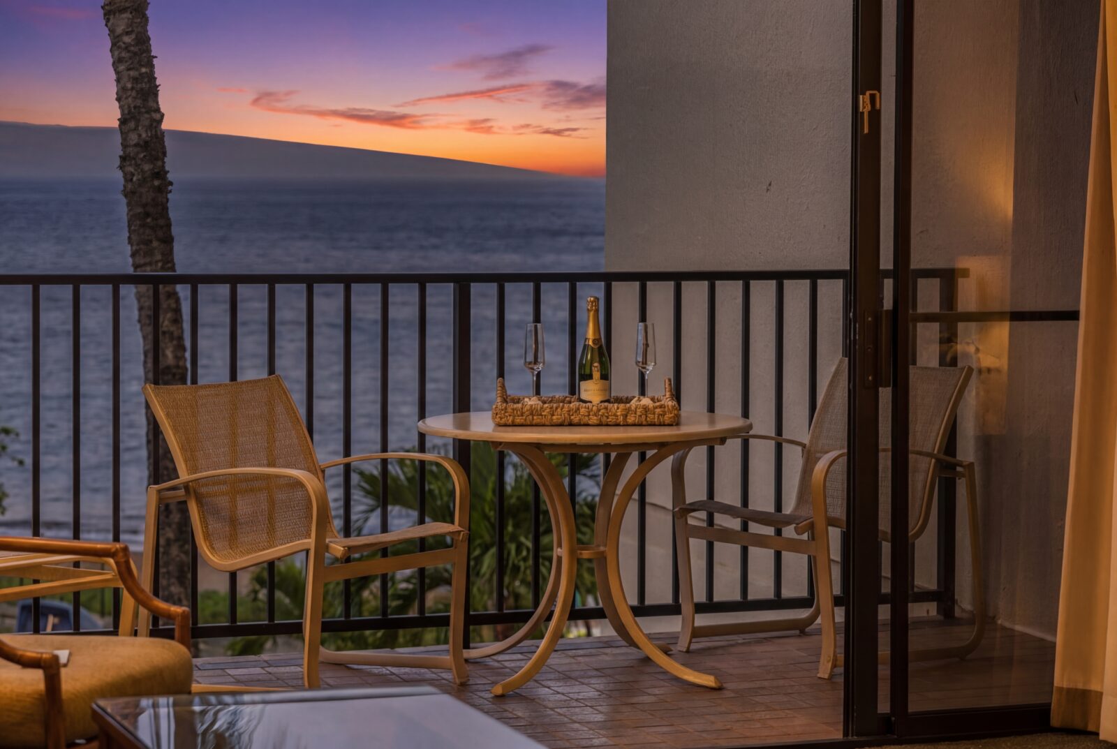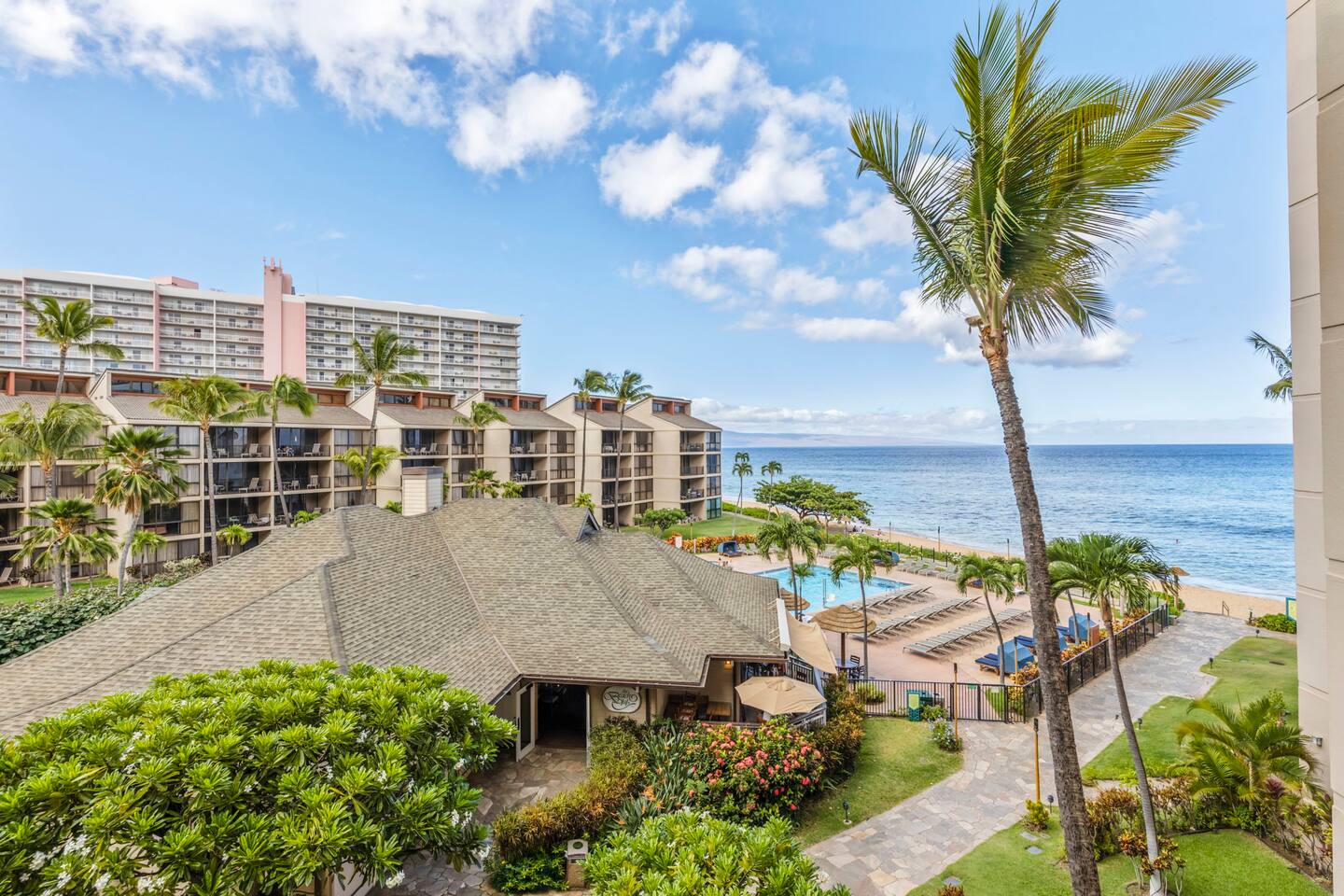 - Private lanai overlooking the Pacific, sunsets, and tropical gardens