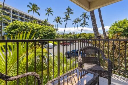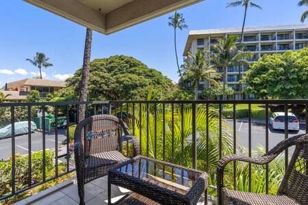Lanai: Private lanai with seating for 2 and peaceful garden/Haleakalā views. Beach gear provided — chairs, umbrella & small cooler (no snorkel gear). Please rinse sand before returning.