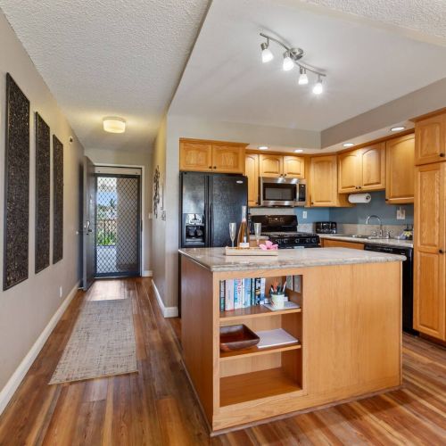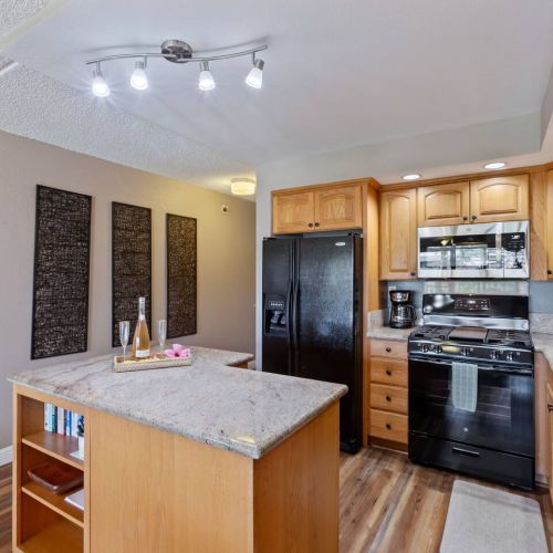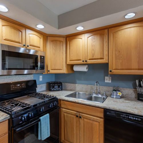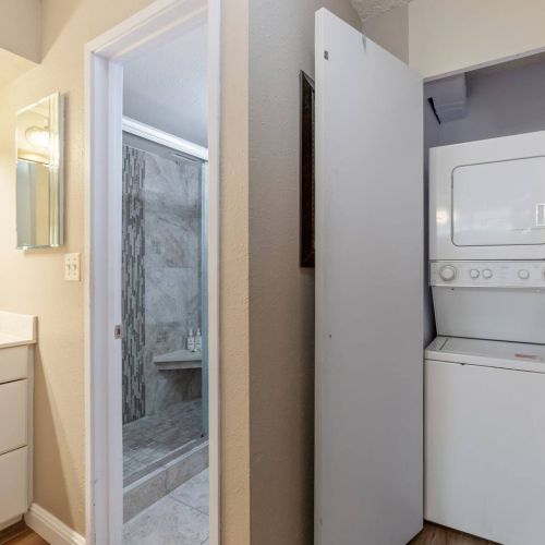 In-unit washer/dryer and fully equipped kitchen for a home-away-from-home feel