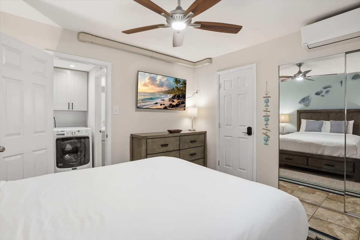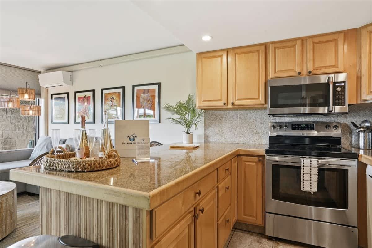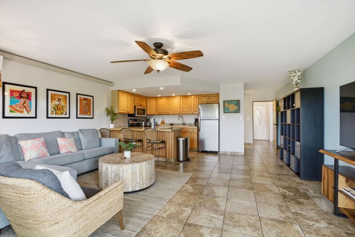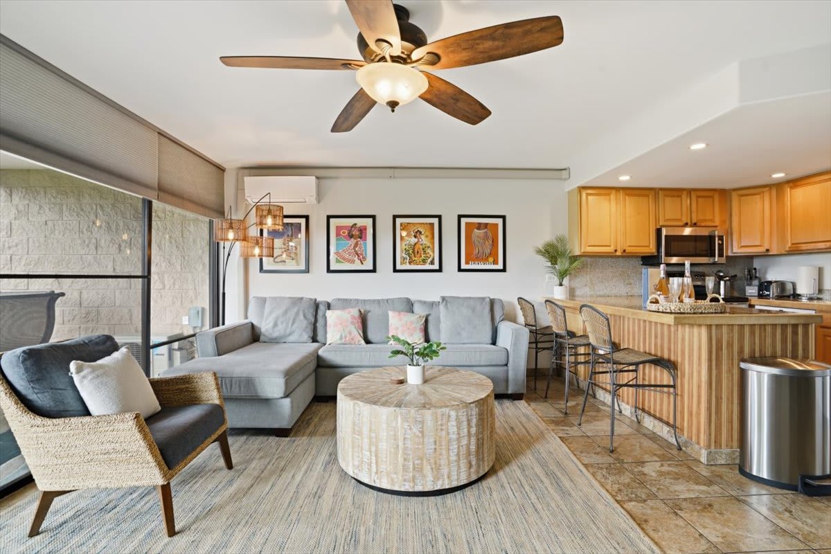 Welcome to Kihei Alii Kai B108. This beautifully remodeled 2 bedroom, 2 bathroom condo can accommodate 6 people. Keep cool year round with Split AC units in the living room & the bedrooms. The condo has a fully equipped kitchen, towels & linens, & beach gear for your use. This condo is perfectly located right in the middle of beautiful Kamaole I & II beach. There are also shops & dining right below the complex at Dolphin Plaza. Free Parking & No resort fees. Make your maui memories at KAK B108!