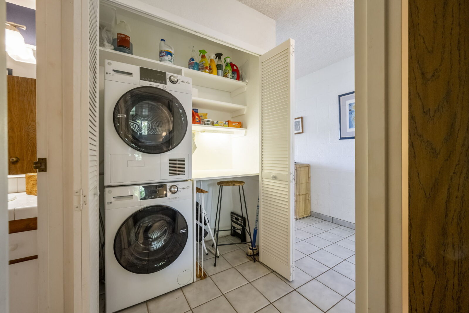Includes in-unit washer/dryer with laundry pods and fabric sheets provided.
