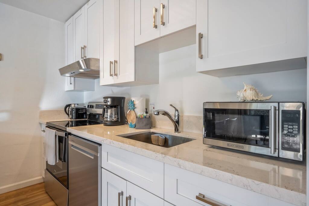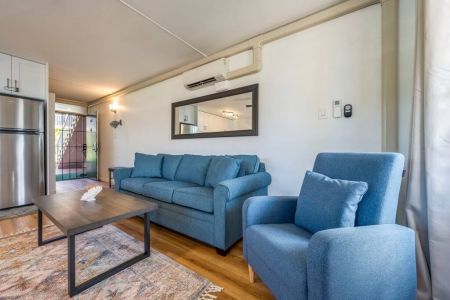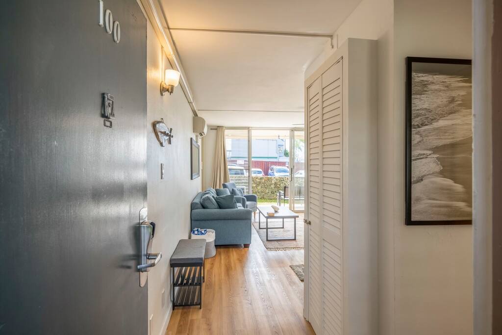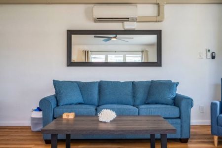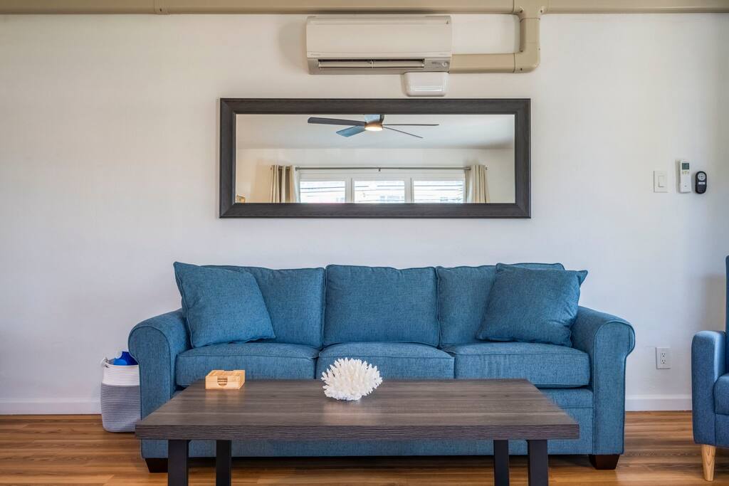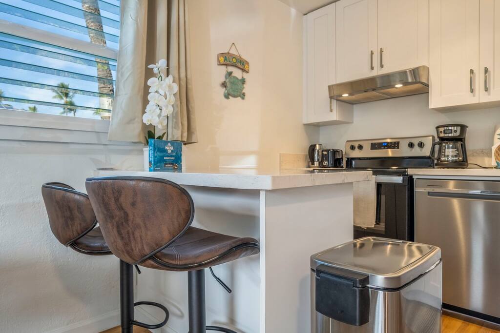 Brand-new split A/C system keeps the space cool and comfortable. Enjoy partial ocean views from the sofa and kitchen area.