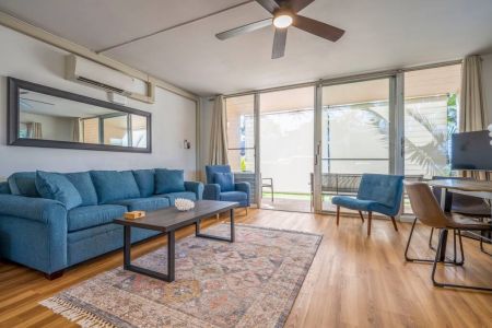 Welcome to Kihei Kai Nani 100. This ground floor, partial ocean view 1 bedroom, 1 bathroom condo has everything you’ll need to make amazing Maui memories. This gem was remodeled top to bottom with your comfort in mind. Every appliance, piece of furniture, & fixture is new in this condo. Brand new split AC system in living room & bedroom to keep cool throughout. Clean & modern bathroom & kitchen design, in unit washer/dryer, coastal aesthetic, & all essentials provided for your stay. Book today!
