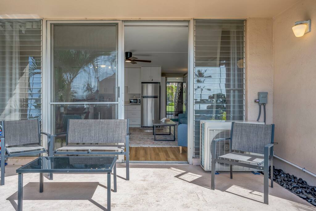 Welcome to Kihei Kai Nani 100. This ground floor, partial ocean view 1 bedroom, 1 bathroom condo has everything you'll need to make amazing Maui memories. This gem was remodeled top to bottom with your comfort in mind. Every appliance, piece of furniture, & fixture is new in this condo. Brand new split AC system in living room & bedroom to keep cool throughout. Clean & modern bathroom & kitchen design, in unit washer/dryer, coastal aesthetic, & all essentials provided for your stay. Book today!