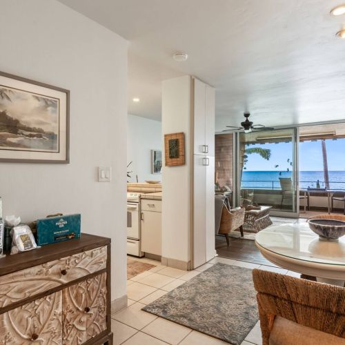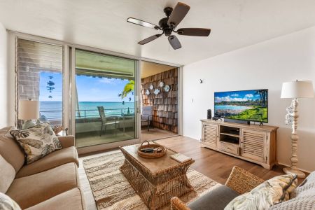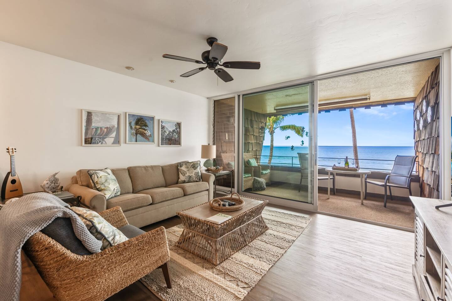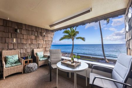 Welcome to Kulakane 212. This second floor direct oceanfront beautiful 1 bedroom condo can accommodate 4 people. Admire surreal ocean views, sunsets, sailboats, sea turtles, & surrounding islands from your private lanai & living room. This condo does not have AC but features ceiling fans throughout & a coastal breeze. Enjoy free on site parking, oceanfront Pool, BBQ area at this centrally located resort. Walk to restaurants, farmers market, beach park, food truck park, & shops from this resort.