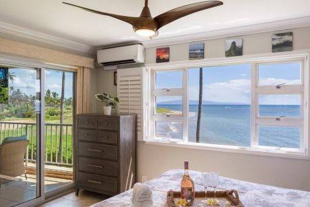 Welcome to Menehune Shores 218. This beautifully updated coastal condo features 3 bedrooms, 2 bathrooms & a private lanai. The condo can accommodate up to 8 people & has AC in every room. Admire breathtaking oceanviews, sunsets, sailboats, kite surfing, & whale watching(seasonal) from multiple rooms. The resort offers amenities like rooftop BBQ area, onsite restaurant, beach, & next to historic Hawaiian fishing pond. No parking or resort fee. Perfect place to make your Maui memories. Book today!