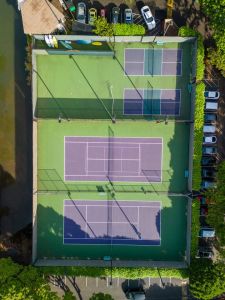 Resort amenities include pools, hot tubs, tennis, pickleball, putting greens, BBQs, and koi ponds