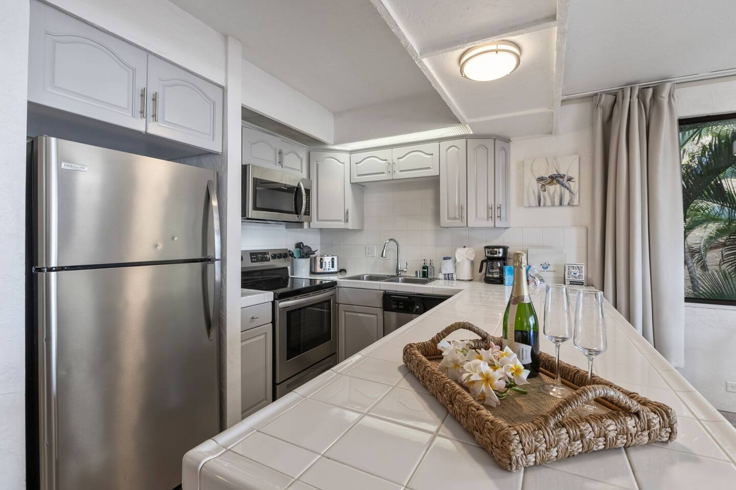 Welcome to Papakea K301. This updated Papakea Resort 1 bed, 1 bath fully stocked condo is in a great location with beautiful Ocean and Resort Views. This bright & airy condo has coastal vibes throughout & can accommodate 4 people. It comes with all the household items you'll need to make amazing Maui memories. The resort has amenities galore including tropical koi pond, putting greens, tennis and pickle ball courts, pools, spas, BBQ area, cabana, 24 hour front desk, ample parking, & more.
