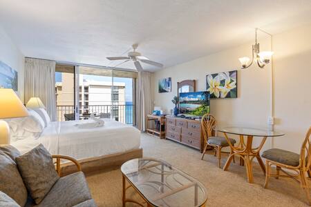 • 10th-floor studio with partial ocean views and tropical breezes