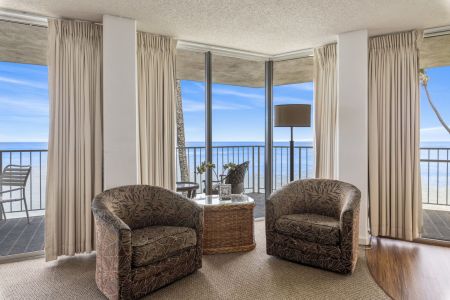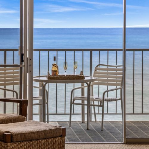• Resort amenities: beachfront pool, BBQ area, fitness center, ping pong, shuffleboard, and on-site concierge