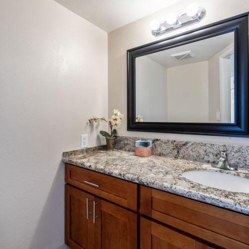 A convenient half bath is located off the main living space.