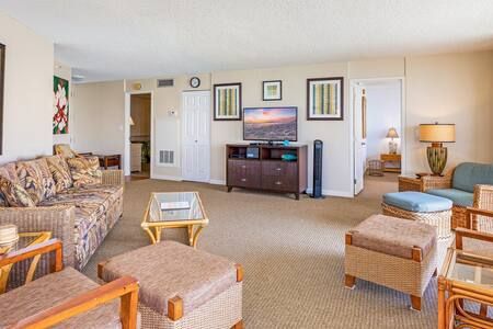 Welcome to Royal Kahana 210. This 1400 sqft, 2 bedroom, 2.5 bath condo features a massive wrap around lanai with unobstructed oceanfront views of the encompassing islands of Molokai & Lanai. Admire seasonal whale watching, sailboats, sea turtles, and sunsets from this 2nd floor gem. This condo can accommodate 6 people and is in the building’s premium quiet location. The resort offers many amenities & is located is a great location. This fully equipped condo is ready to host your Maui memories!