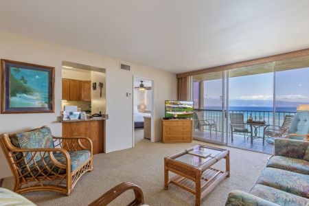 Welcome to Royal Kahana 906. Exceptional ocean views from this 9th floor condo. This spacious one bedroom can accommodate 4 people with its sofa sleeper. Keep cool year round with central AC. The fully equipped kitchen allows you to cook some of your own meals if you just want to stay in & relax. Admire sunsets, sailboats, whales, sea turtles, sunsets, & Molokai island views from this beautiful condo. The resort offers so many amenities to make amazing Maui memories. Book today!