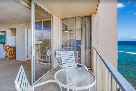 Private lanai with panoramic ocean views — perfect for coffee at sunrise or cocktails at sunset.