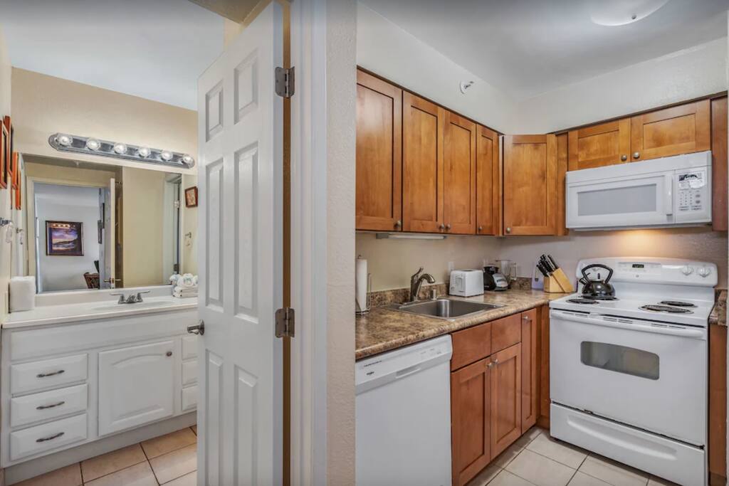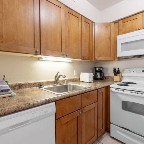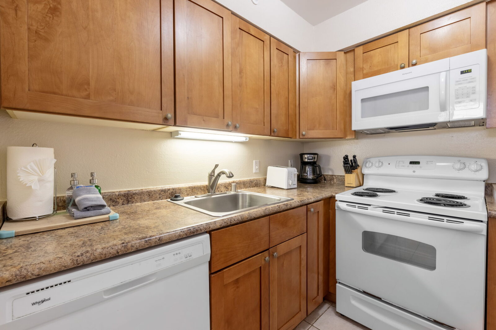 This condo is older and not remodeled. It is extremely clean and well-stocked, but furnishings and décor are dated.