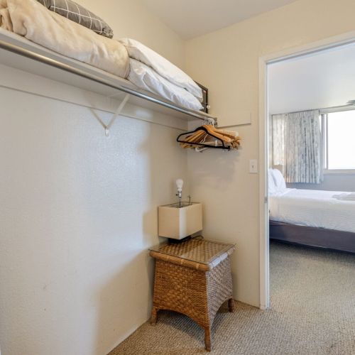 Closet includes beach gear — chairs, umbrella, and cooler (no snorkel gear).
